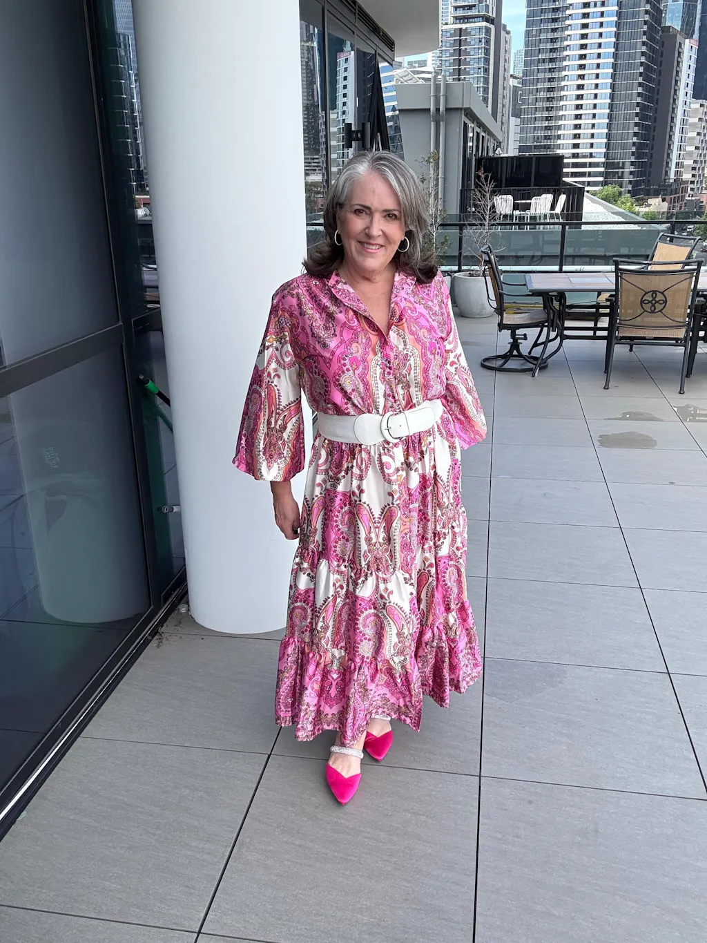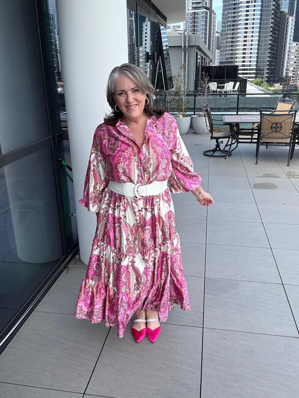 This dress stands out in a crowd and wonderful for October Think Pink functions for Breast Cancer awareness.