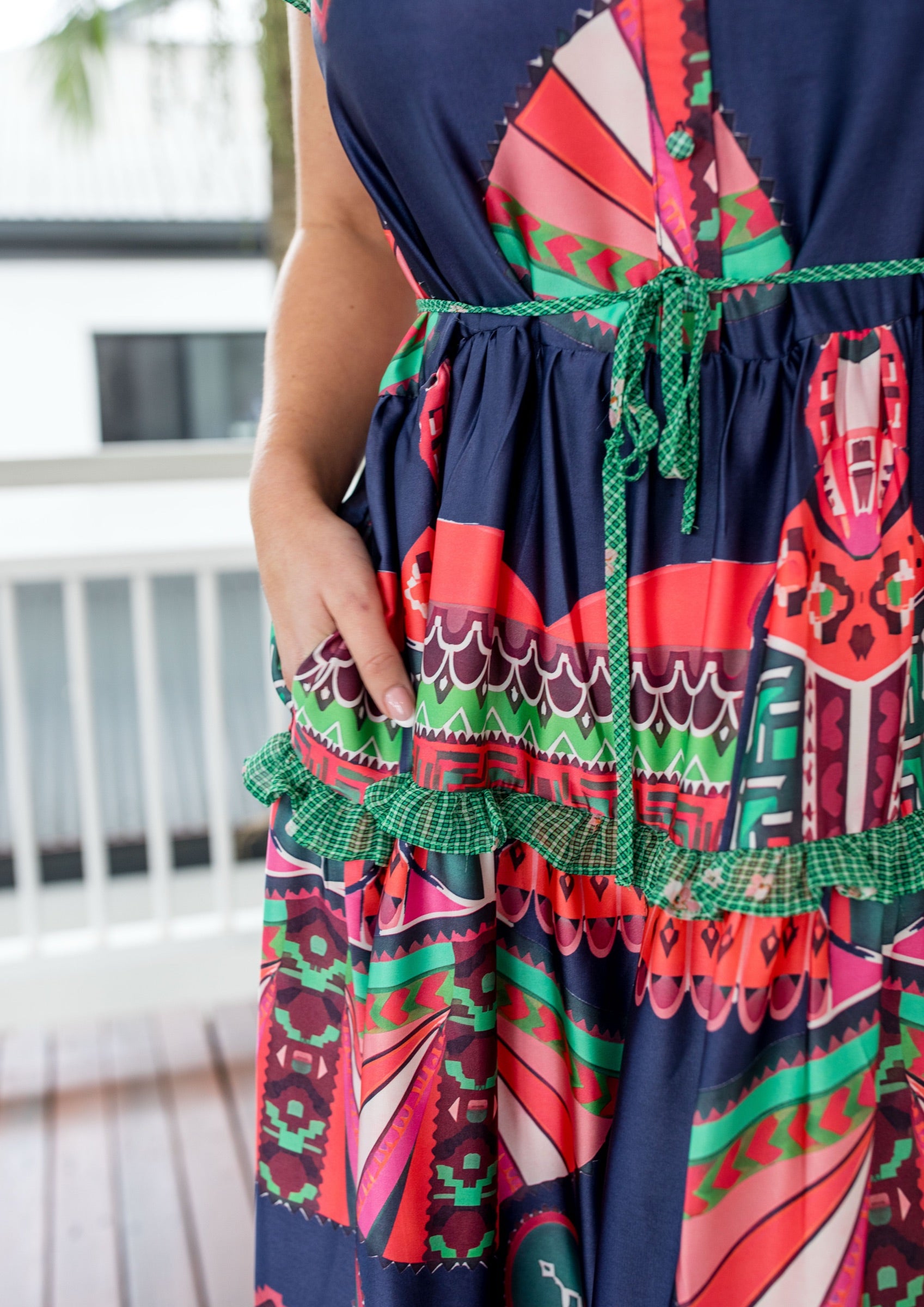 I’ve used two fabrics that clash yet complement each other beautifully. I usually make this style in cotton, but I couldn’t get this stunning polyester print out of my head when I first saw it. I gave it a try - and I was so excited to see the fall and drape move like liquid. It was one I simply had to make.